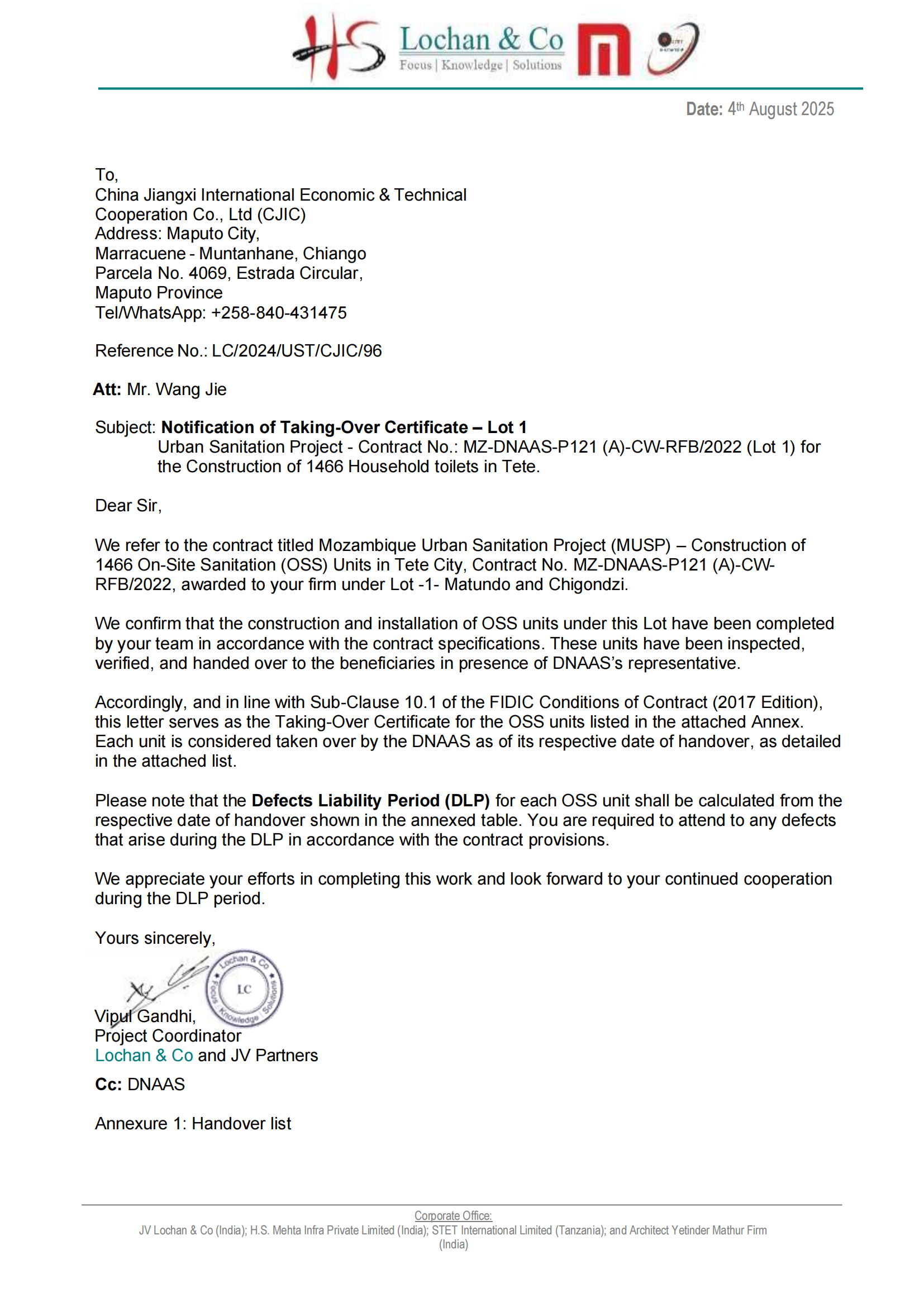 8月4日,,,,,,由公司实施的莫桑比克泰特城市卫生改造项目顺利完成2933个家用卫生间建设,,,,,,提前1个月完成全部施工任务并正式移交。 。。。 。 。